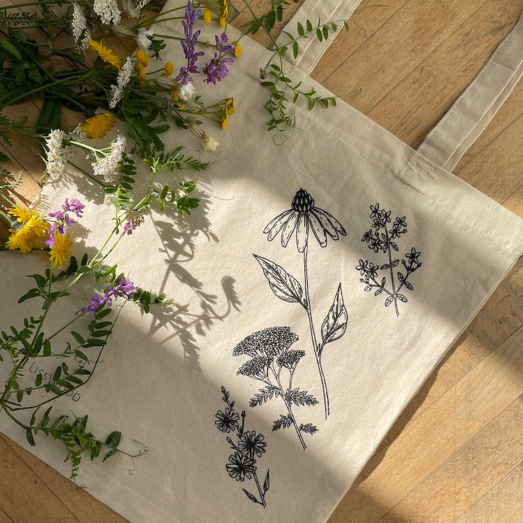 Weil wir Blumen und Pflanzen lieben, haben wir uns entschieden, sie in unserem Stil auf einer Canvas-Tasche zu verewigen. Die Tasche besteht aus 100 % Baumwolle und wird nicht nur zu einem tollen Helfer beim Tragen, sondern auch zu einem Design-Accessoire.