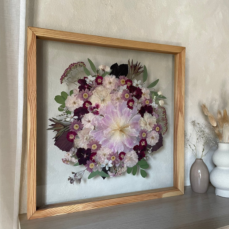Genau das zeichnen unsere Gemälde aus. Wir legen Wert auf Originalität und Qualität, deshalb ist jedes unserer Gemälde ein Original, gefertigt aus echten, gepressten Blumen aus der Region und gefasst in handgefertigten Massivholzrahmen.