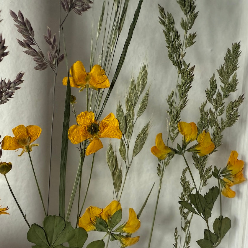 Handgemachtes Wiesenblumengemälde mit Pflanzen und Blumen von tschechischen Wiesen und Gärten.