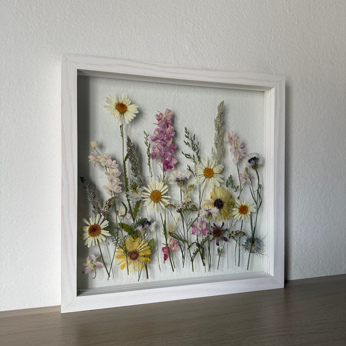 Genau das zeichnen unsere Gemälde aus. Wir legen Wert auf Originalität und Qualität, deshalb ist jedes unserer Gemälde ein Original, gefertigt aus echten, gepressten Blumen aus der Region und gefasst in handgefertigten Massivholzrahmen.