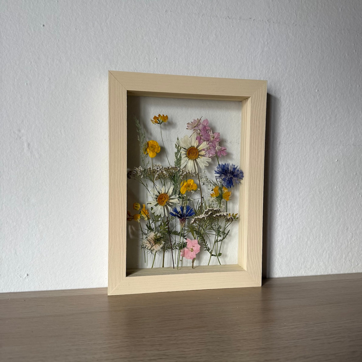 Genau das zeichnen unsere Gemälde aus. Wir legen Wert auf Originalität und Qualität, deshalb ist jedes unserer Gemälde ein Original, gefertigt aus echten, gepressten Blumen aus der Region und gefasst in handgefertigten Massivholzrahmen.