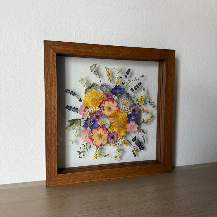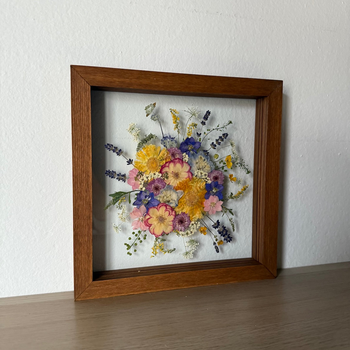 Genau das zeichnen unsere Gemälde aus. Wir legen Wert auf Originalität und Qualität, deshalb ist jedes unserer Gemälde ein Original, gefertigt aus echten, gepressten Blumen aus der Region und gefasst in handgefertigten Massivholzrahmen.