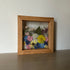 Handgefertigtes Blumengemälde mit Blumen in Gelb, Rosa und Blau, die aus der Unterseite des Gemäldes wachsen . Unter den Blumen finden Sie Hortensien, Chrysanthemen, Wolfsmilch und vieles mehr.