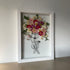 Handgemachtes Blumengemälde mit einer original gemalten Silhouette mit Blumen in den Farben Gelb, Blau und Rosa.