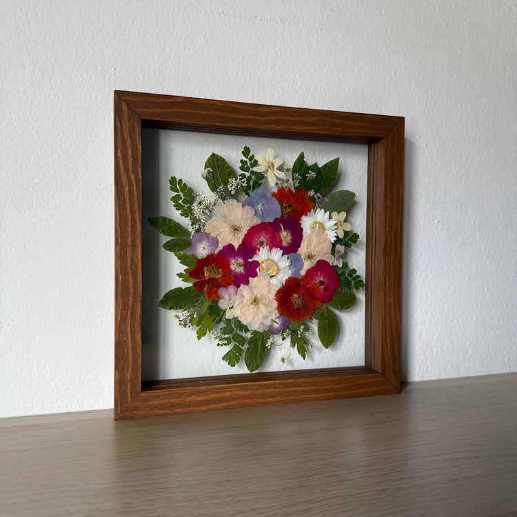 Genau das zeichnen unsere Gemälde aus. Wir legen Wert auf Originalität und Qualität, deshalb ist jedes unserer Gemälde ein Original, gefertigt aus echten, gepressten Blumen aus der Region und gefasst in handgefertigten Massivholzrahmen.