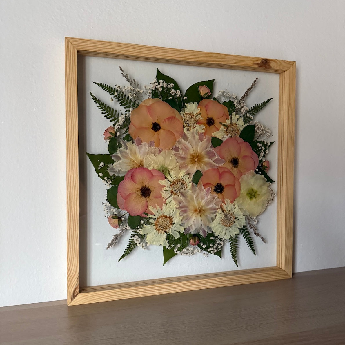 Přesně to jsou naše obrazy. Zakládáme si na originalitě a kvalitě, proto je každý náš obraz originál z pravých vylisovaných lokálních květů zarámovaných do ručně dělaných masivních dřevěných rámů.