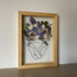 Handgemachtes Blumengemälde mit einer original gemalten Silhouette mit Blumen in den Farben Gelb, Blau und Rosa.