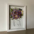Handgemachtes Blumengemälde mit einer original gemalten Silhouette mit Blumen in den Farben Gelb, Blau und Rosa.