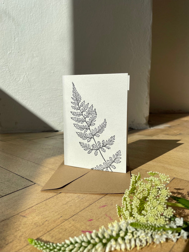 Delight your loved ones with a forest wish with our favorite fern printed on natural hard paper. Inside, the paper is clean to write a message from the heart. Give it as a gift with a painting or just as it is. ❤️