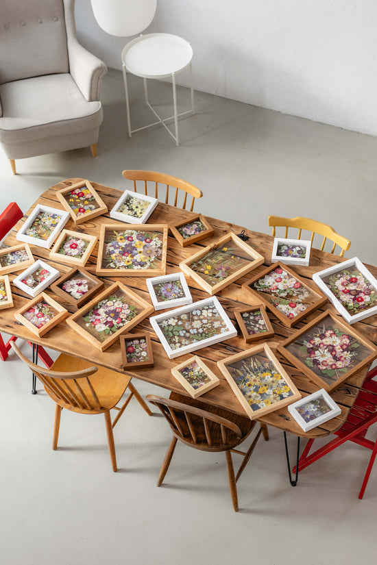 Unsere Blumen und die Natur werden meistens je nach Saison gepresst oder getrocknet. Unser Lager und unsere Möglichkeiten sind jedoch ziemlich groß und wir glauben, dass wir immer die ideale Pflanze finden werden. Wenn es derzeit nicht verfügbar ist, helfen wir Ihnen bei der Auswahl einer alternativen Pflanze, die Ihnen das gleiche Vergnügen bereiten wird.