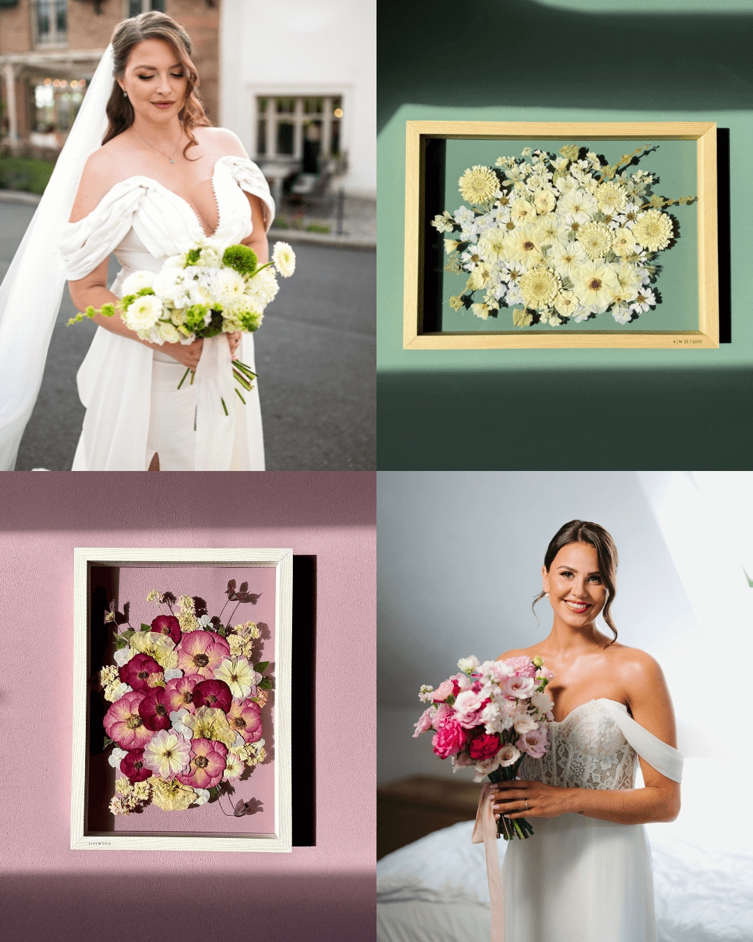 Sie gehen zu einer Hochzeit und wissen nicht, was Sie mit einem Hochzeitsgeschenk machen sollen? Schenken Sie uns unseren Gutschein für das Pressen und Einrahmen eines Brautstraußes. Es ist ein sehr originelles Geschenk, das jede Frau erfreuen und eine schöne Erinnerung an ihren Hochzeitstag schaffen wird.