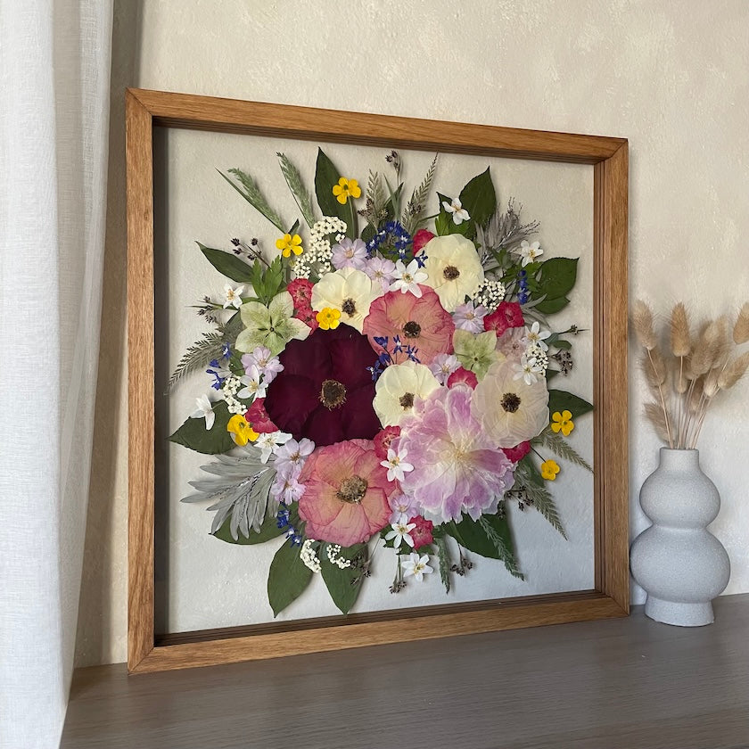 Genau das zeichnen unsere Gemälde aus. Wir legen Wert auf Originalität und Qualität, deshalb ist jedes unserer Gemälde ein Original, gefertigt aus echten, gepressten Blumen aus der Region und gefasst in handgefertigten Massivholzrahmen.