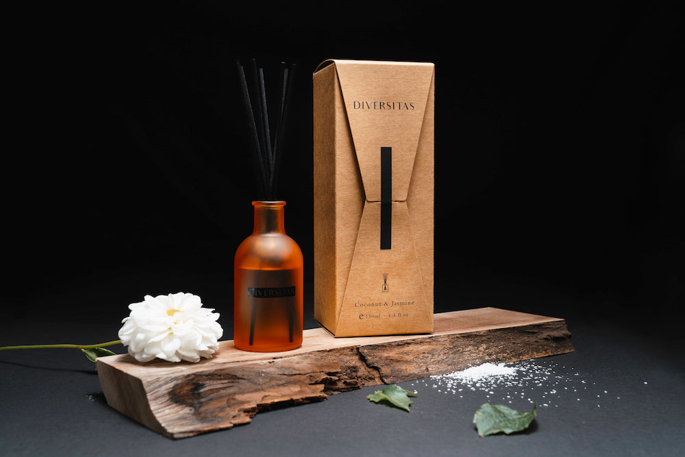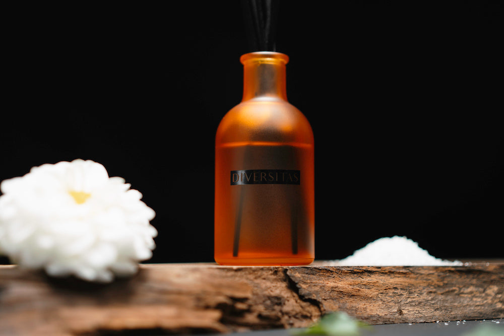 Der Diffusor verfügt über eine matte, antik-orange Flasche und mehrere schwarze Bambusstäbe und eignet sich daher als unauffällige, aber dennoch ansprechende Dekoration.