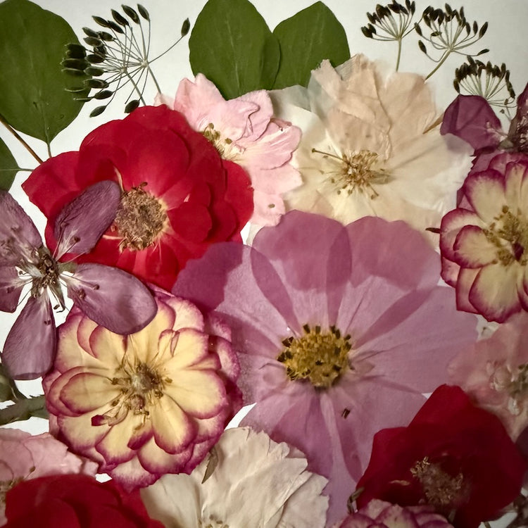 Ja, sie sind echt. :) Zwischen die Gläser legen wir getrocknete und gepresste Blumen und Pflanzen, die wir je nach Art in einer Lösung einweichen, mit Naturfarben einfärben oder lackieren, damit ihre satte Farbe möglichst lange erhalten bleibt. Da wir aber nicht im Vakuum leben und die Sonne sich um uns dreht, kann es zu leichten Farbveränderungen kommen. Aber es ist die Essenz der Natur und tut der Schönheit der Blumen für uns keinen Abbruch, manchmal sogar das Gegenteil. :)