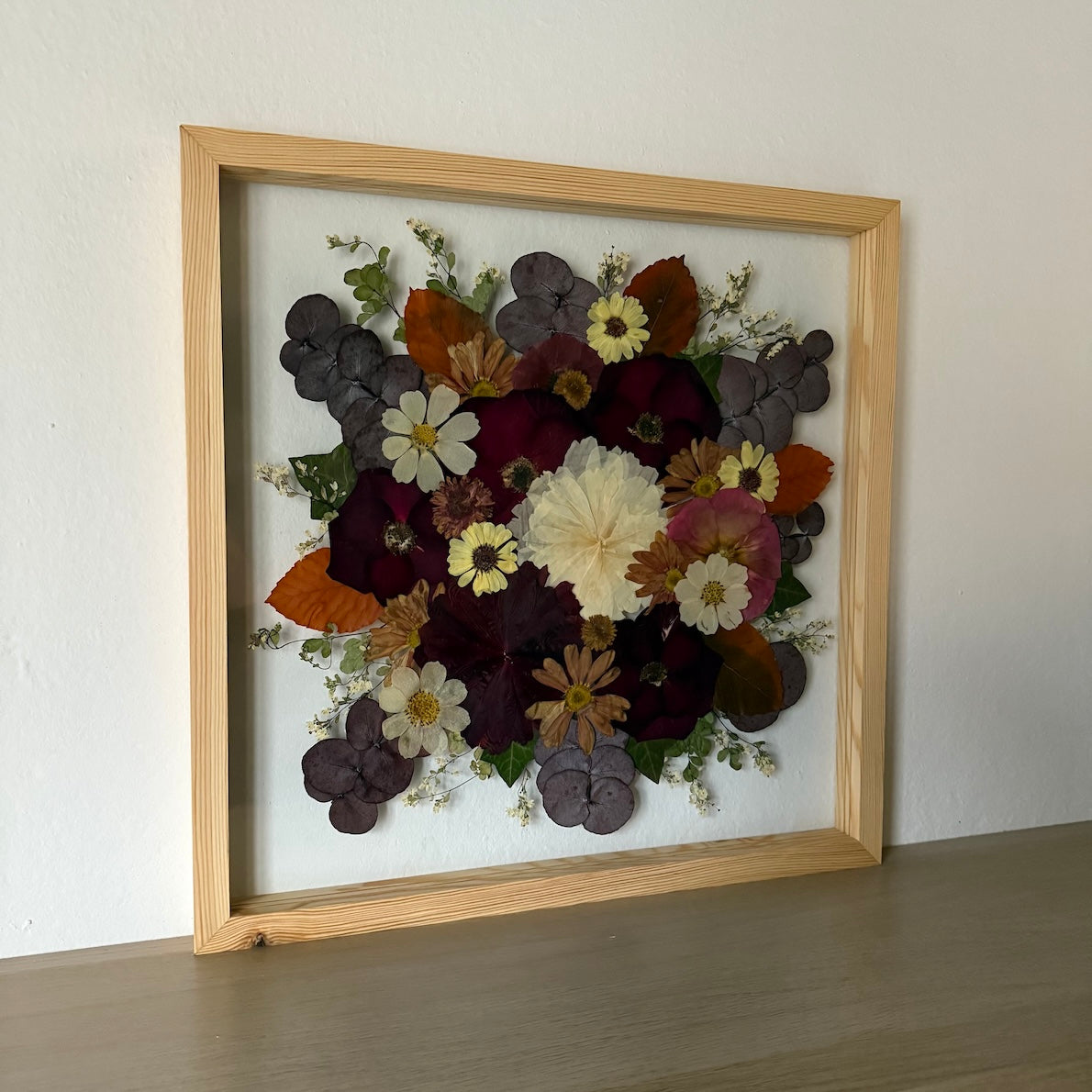 Přesně to jsou naše obrazy. Zakládáme si na originalitě a kvalitě, proto je každý náš obraz originál z pravých vylisovaných lokálních květů zarámovaných do ručně dělaných masivních dřevěných rámů.
