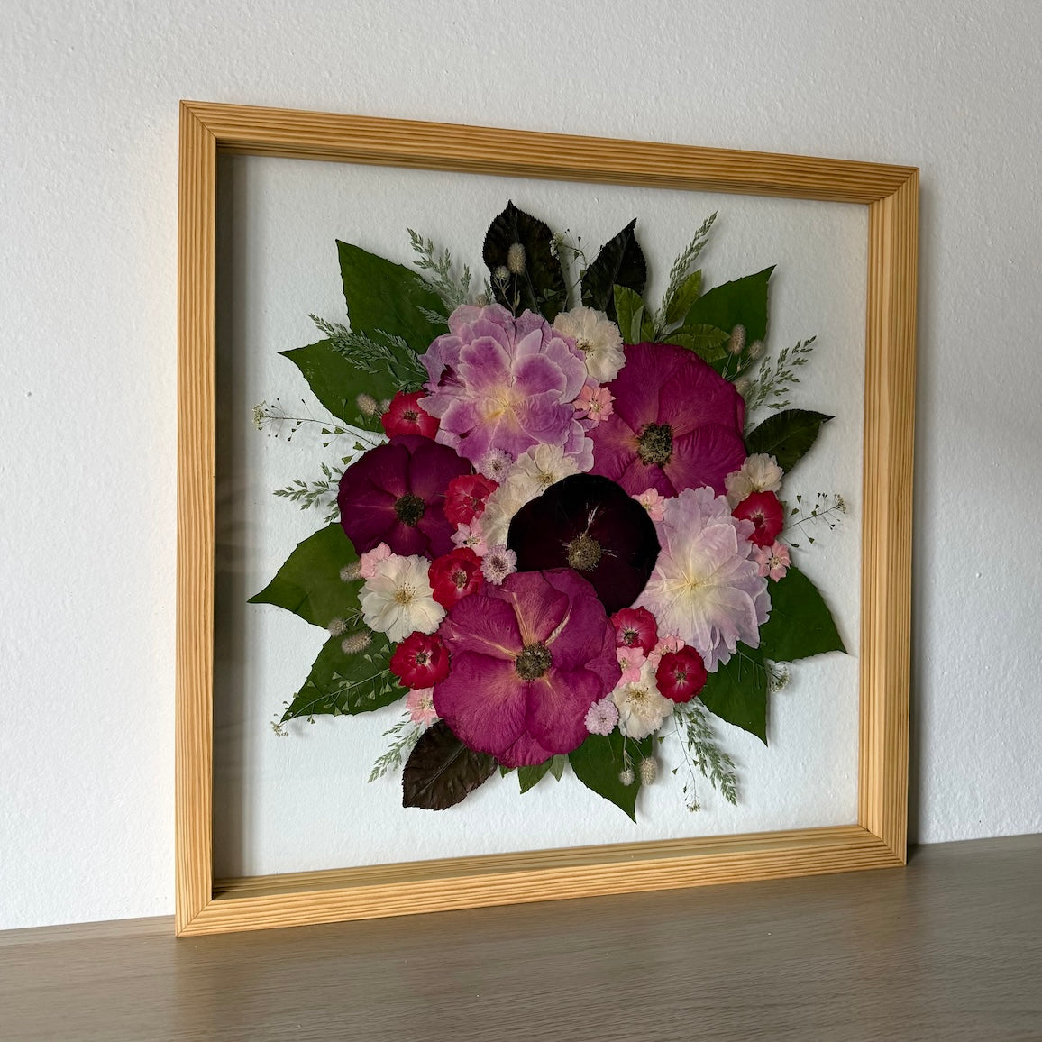 Genau das zeichnen unsere Gemälde aus. Wir legen Wert auf Originalität und Qualität, deshalb ist jedes unserer Gemälde ein Original, gefertigt aus echten, gepressten Blumen aus der Region und gefasst in handgefertigten Massivholzrahmen.