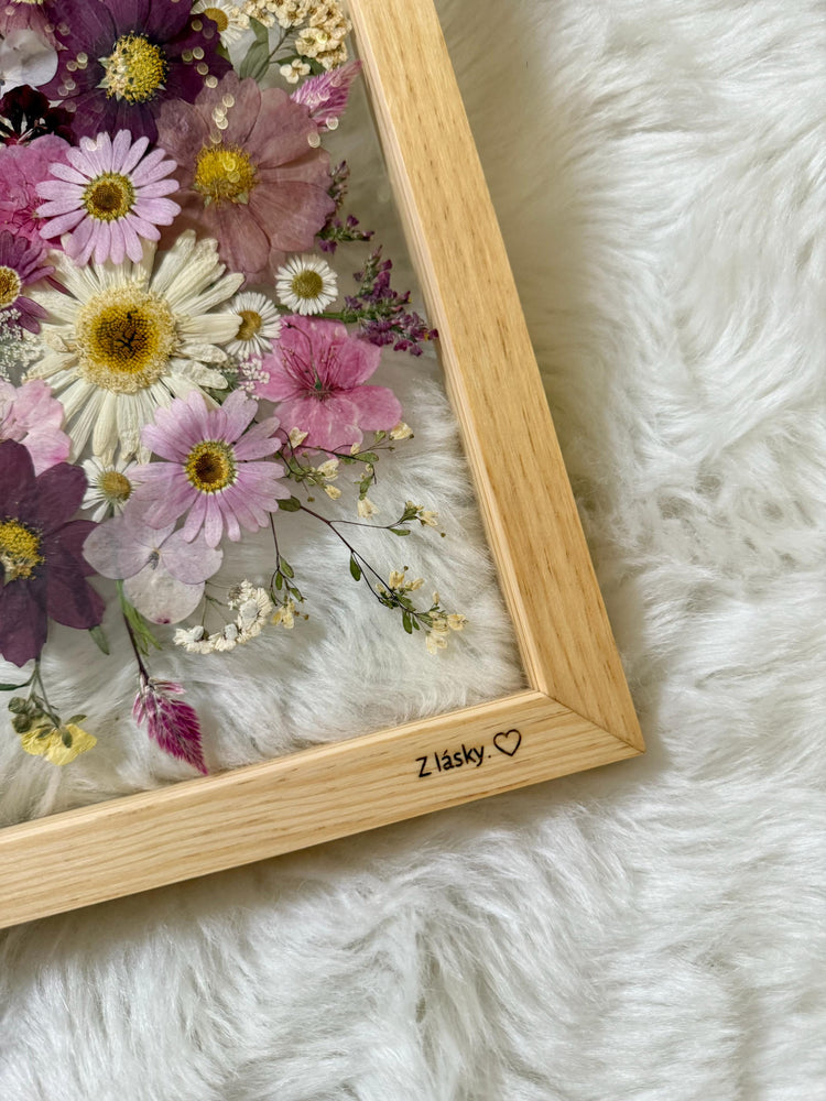 Přesně to jsou naše obrazy. Zakládáme si na originalitě a kvalitě, proto je každý náš obraz originál z pravých vylisovaných lokálních květů zarámovaných do ručně dělaných masivních dřevěných rámů.