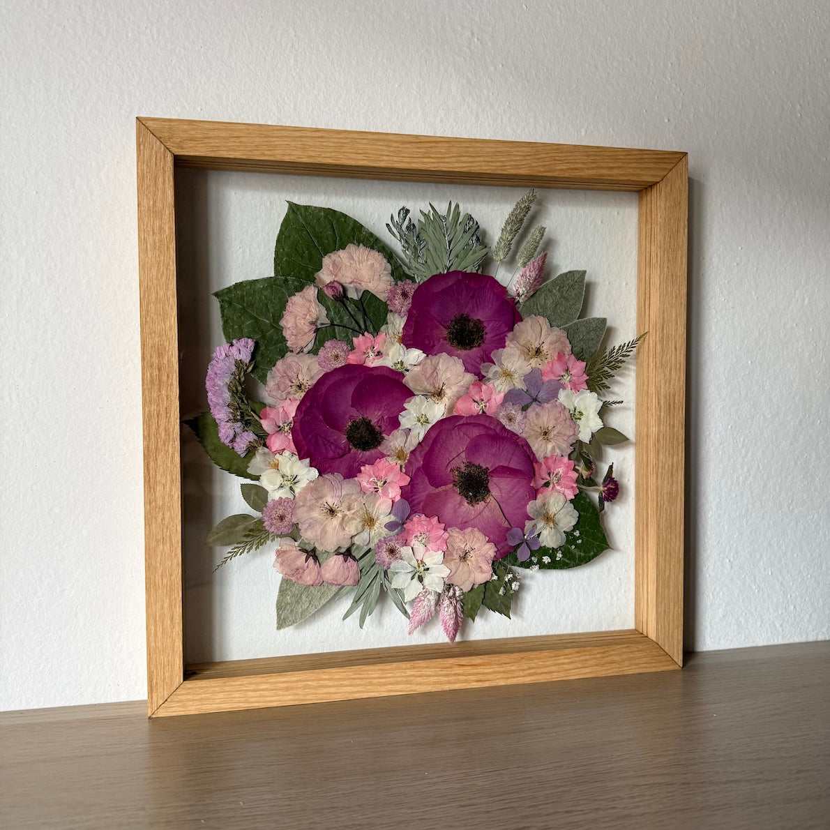 Genau das zeichnen unsere Gemälde aus. Wir legen Wert auf Originalität und Qualität, deshalb ist jedes unserer Gemälde ein Original, gefertigt aus echten, gepressten Blumen aus der Region und gefasst in handgefertigten Massivholzrahmen.