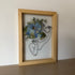 Handgemachtes Blumengemälde mit einer original gemalten Silhouette mit Blumen in den Farben Gelb, Blau und Rosa.