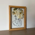 Handgemachtes Blumengemälde mit einer original gemalten Silhouette mit Blumen in den Farben Gelb, Blau und Rosa.