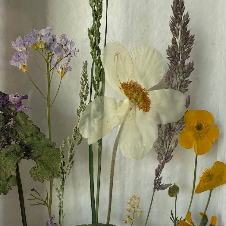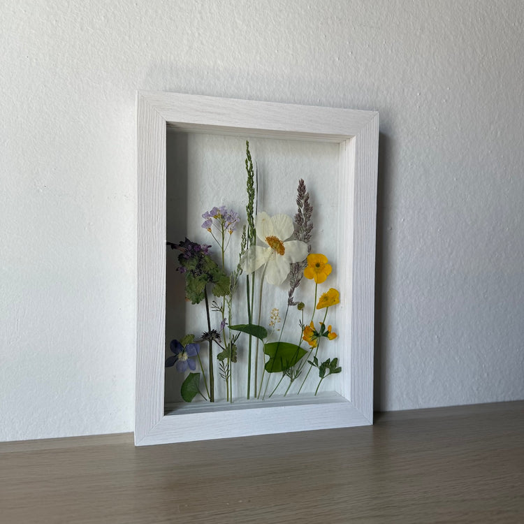 Handgemachtes Wiesenblumengemälde mit Pflanzen und Blumen von tschechischen Wiesen und Gärten.