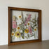 Handgemachtes Blumengemälde mit Blumen in Rosa, Rot und Weiß, die aus den Ecken des Gemäldes wachsen. Unter den Blumen finden Sie Schmucklilien, Rosen, Wolfsmilch und vieles mehr.